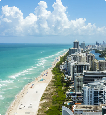 Miami, descrita como "la única ciudad del mundo que comenzó como una fantasía". Cuenta con un clima subtropical, un puerto natural protegido y unas playas espectaculares. Miami ha sido tradicionalmente un refugio para turistas y jubilados.